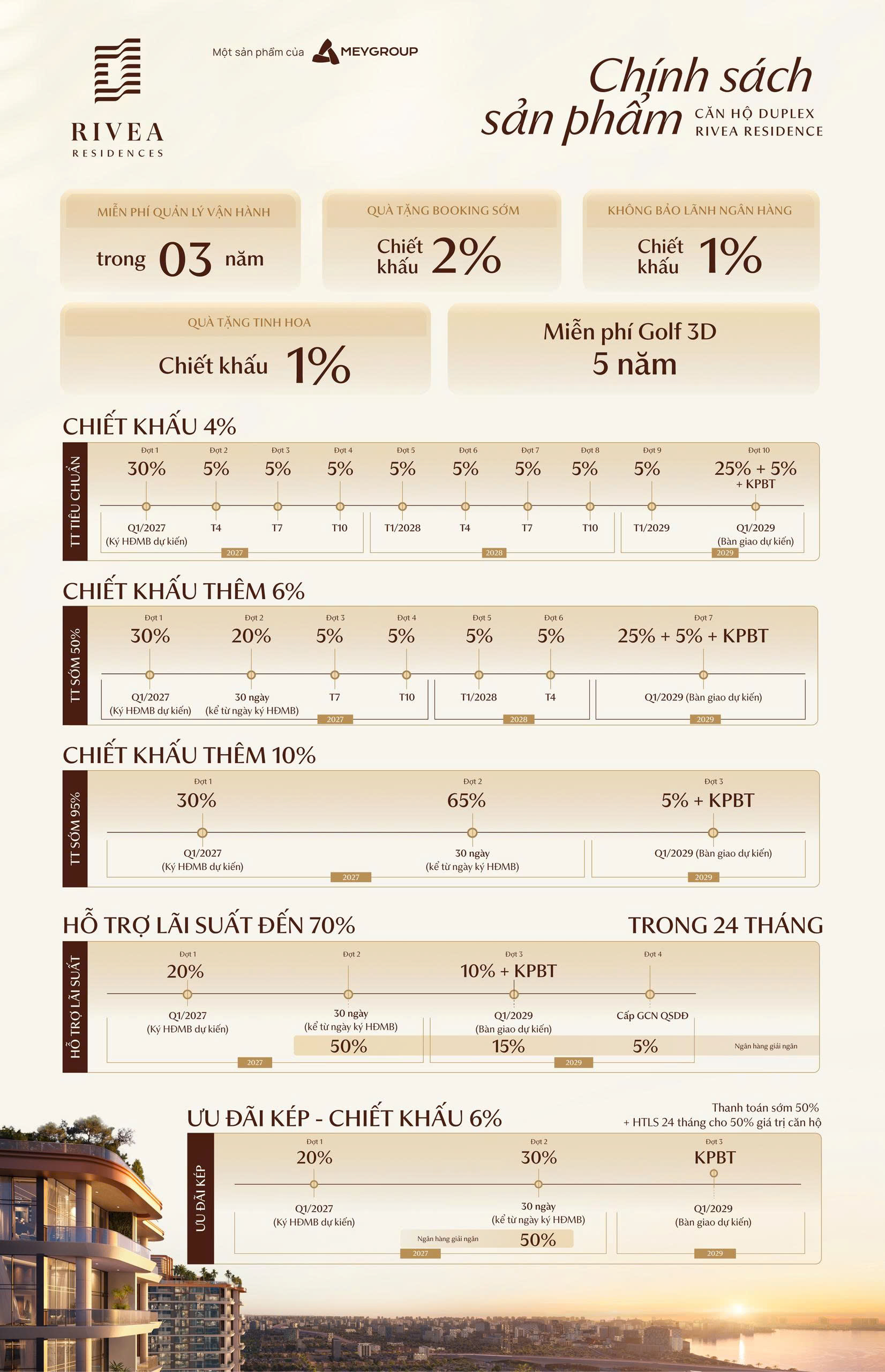 Phân khu cao tầng (Rivea Residences): Gồm 2 tòa tháp cao 35 tầng (4 tầng hầm), cung cấp khoảng 618 căn hộ hạng A.